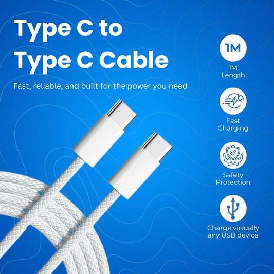 Premium 60W USB-C to USB-C Fast Charging Cable in White – Durable, High-Speed Data & Power Delivery Compatible with Smartphones, Tablets, Laptops, and Accessories