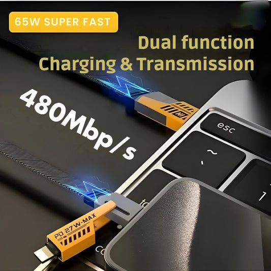 120W 4-in-1 Braided Fast Charging Cable – Lightning to USB-C, USB-C to USB-C, Lightning to USB, Durable Military-Grade Design, Compatible with iPhone, Samsung, OnePlus, Tablets & More