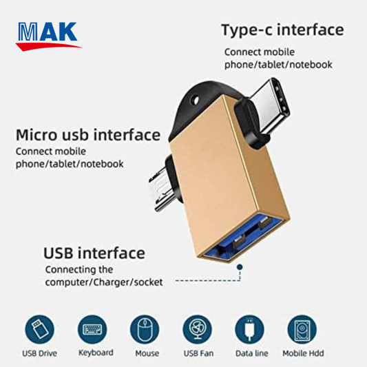 2 in 1 OTG Adapter Micro USB+USB Type C to USB 3.0 Female Connector