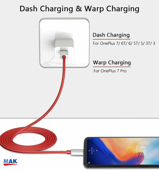 65W Fast Charging Cable USB to Type-C Charge Compatible with Oneplus & Other Devices (Red)