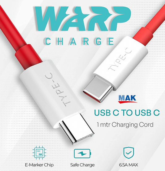 65W Fast Charging Cable Type-C to Type-C Charge Compatible with Oneplus & Other Devices (Red)