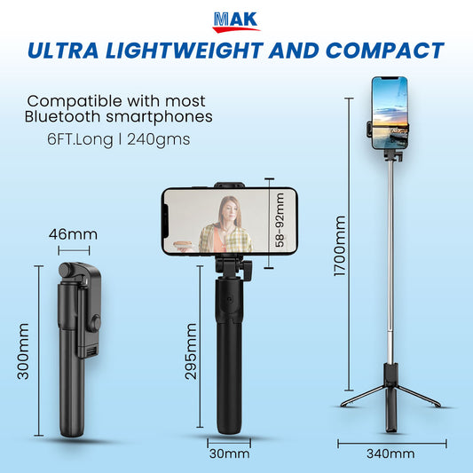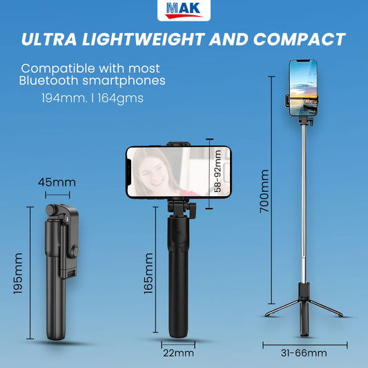 MK-R1 Bluetooth Extendable Selfie Stick with Wireless Remote and Tripod (700mm Extendable)