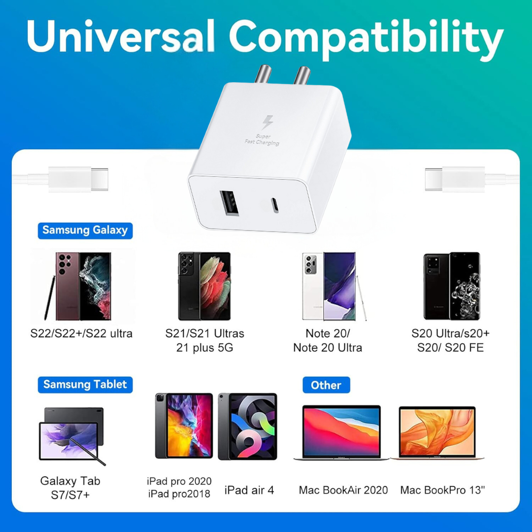 - WIDE COMPATIBILITY : The charger is compatible with a range of Samsung Galaxy S24 Ultra | S23 Plus, S23 Fe, Z Fold 6/5/4/3, Z Flip 6/5/4/3, iPhone 15 Series, iPhone 14 Series, iPhone 13 Series, iPhone 12 Series & Android Devices like Oppo, Realme, Oneplus, Vivo and other devices that support SuperVOOC/ DASH/ WARP/DART Charge USB Power Delivery (PD) 3.0 technology.