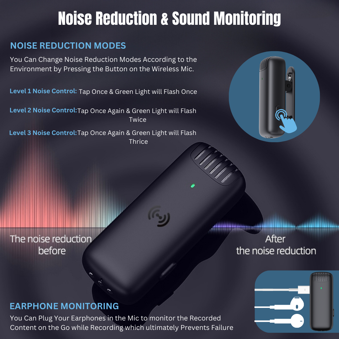 Advanced Noise Reduction Modes: Built-in intelligent noise reduction effectively minimizes background sounds, delivering clear, natural voice quality for professional recordings in any environment.